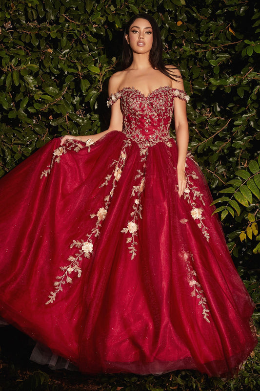 3D FLORAL OFF SHOULDER GOWN BY CINDERELLA DIVINE CD0185
